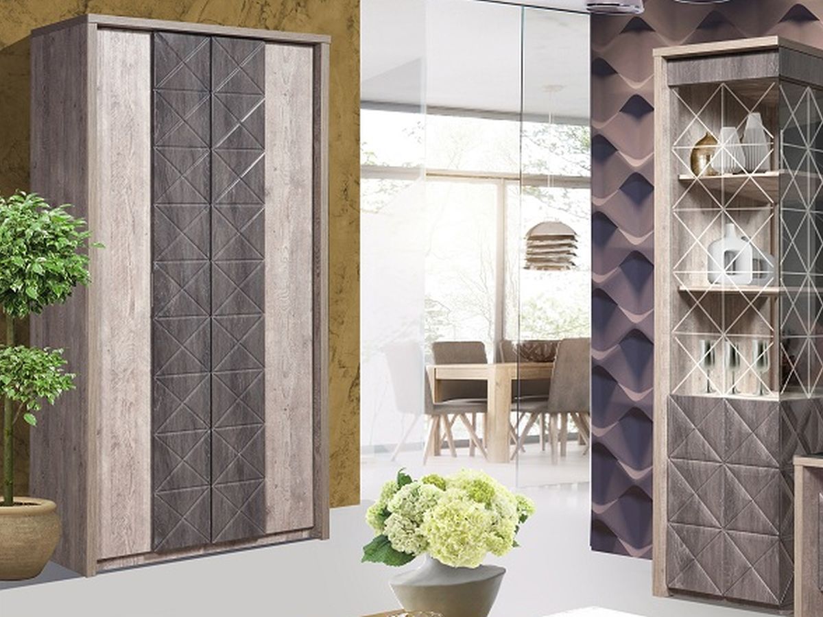 Шкаф с витриной «Монако П» КМК 0673.7, Сосна натуральная/Дуб шале графит в магазине «На диване» в Москве — Выгодная цена