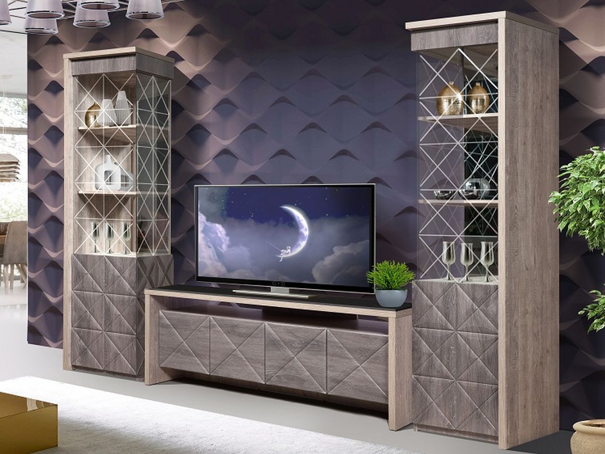 —Купить Шкаф с витриной «Монако П» КМК 0673.7, Сосна натуральная/Дуб шале графит в Москве