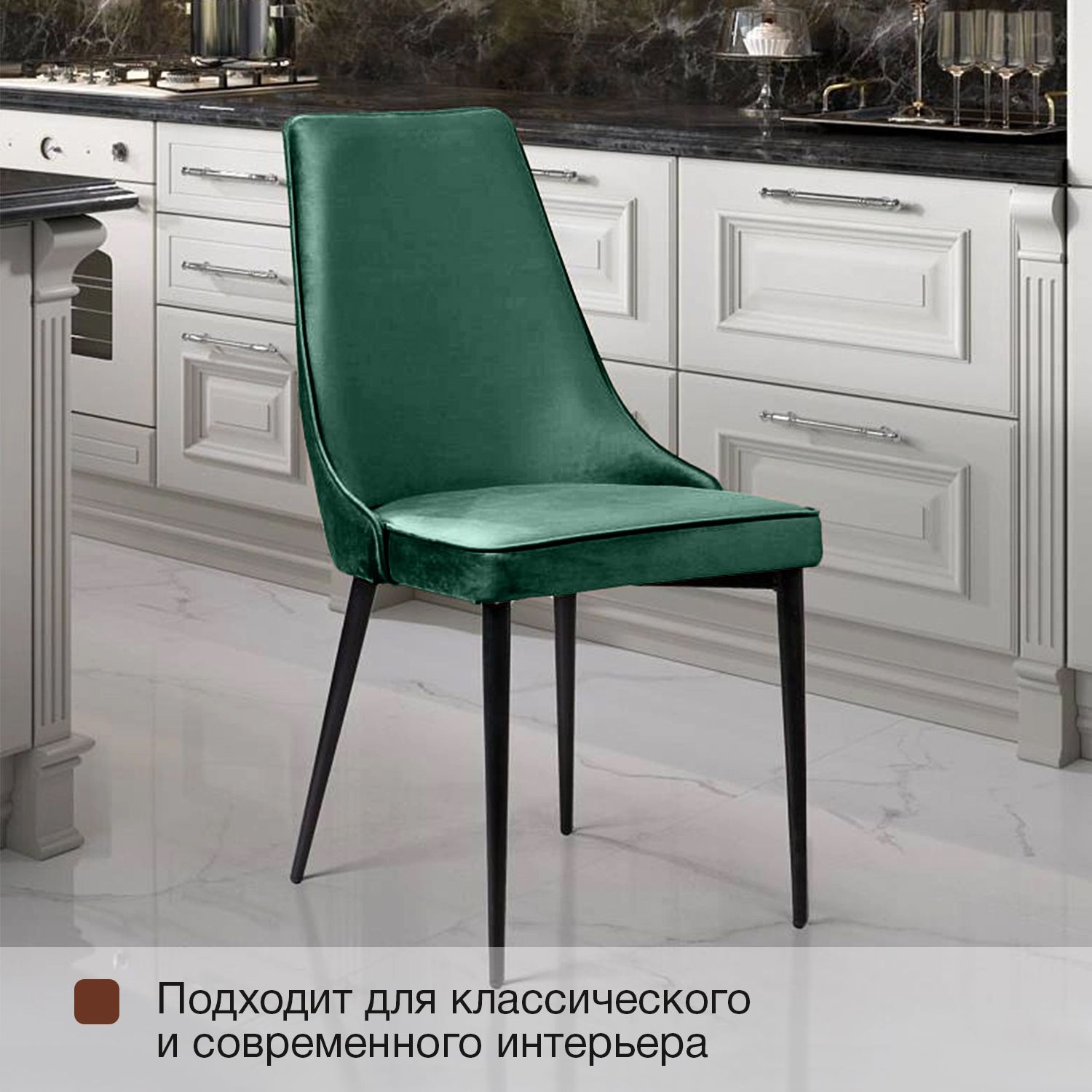 Стул Oliver комплект (4 шт), бархат зелёный 19/ чёрный конус в магазине «На диване» в Москве — Выгодная цена